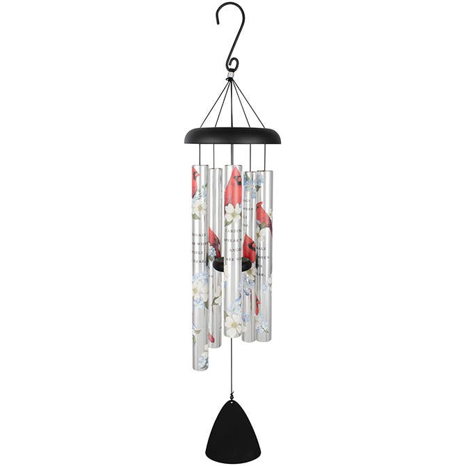 Our Picturesque Sonnet Chimes feature powder coated aluminum construction and UV printed tubes with industrial cord. 5 heavy walled tubes that emit gentle tones that are pleasing to the ear. 1 1/4" Diameter Tubes - Adjustable StrikerChime Tubes Read: "Cardinals appear when angels are near."L: 38"