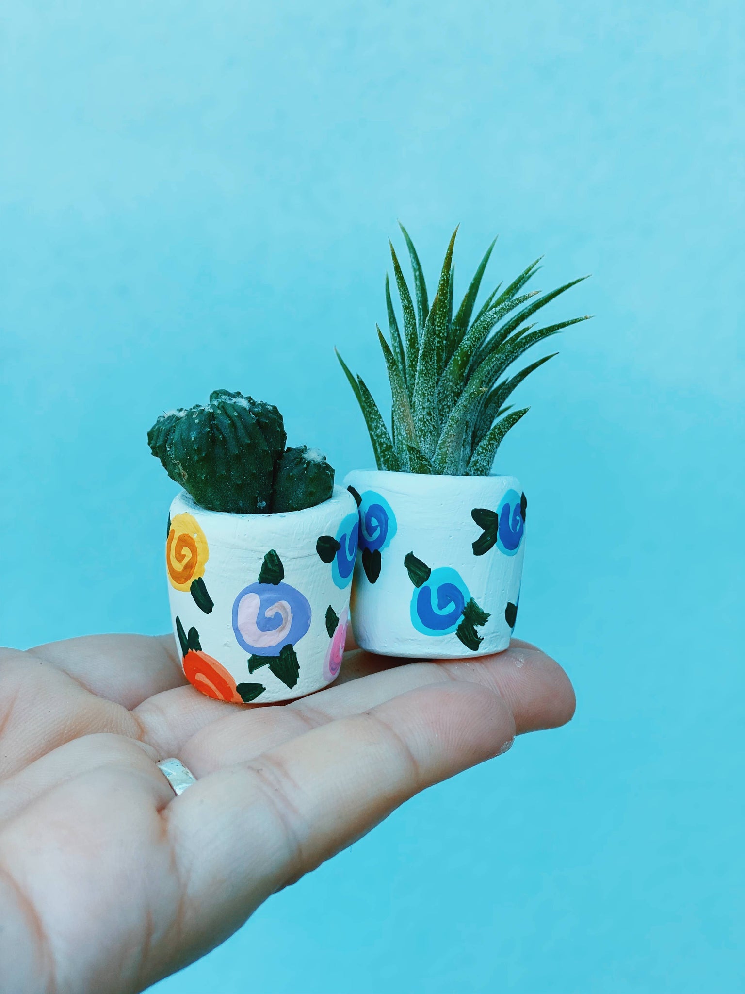 This baby plant is in a cute concrete, reusable pot that is handmade, painted and planted by me. It’s approximately 2 inches tall and 1 inch wide.