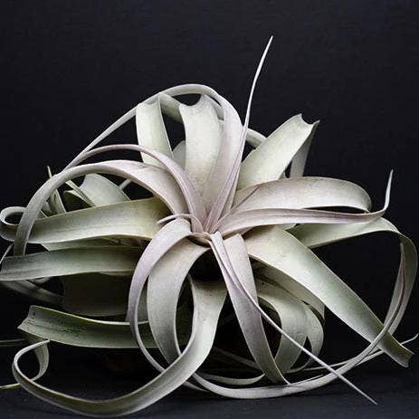 Known for its silvery green, moderately fuzzy foliage, and leaves that curl. Xerographica can grow very large for air plants and produce a tall spike bloom that ranges in color from yellow to orange.
