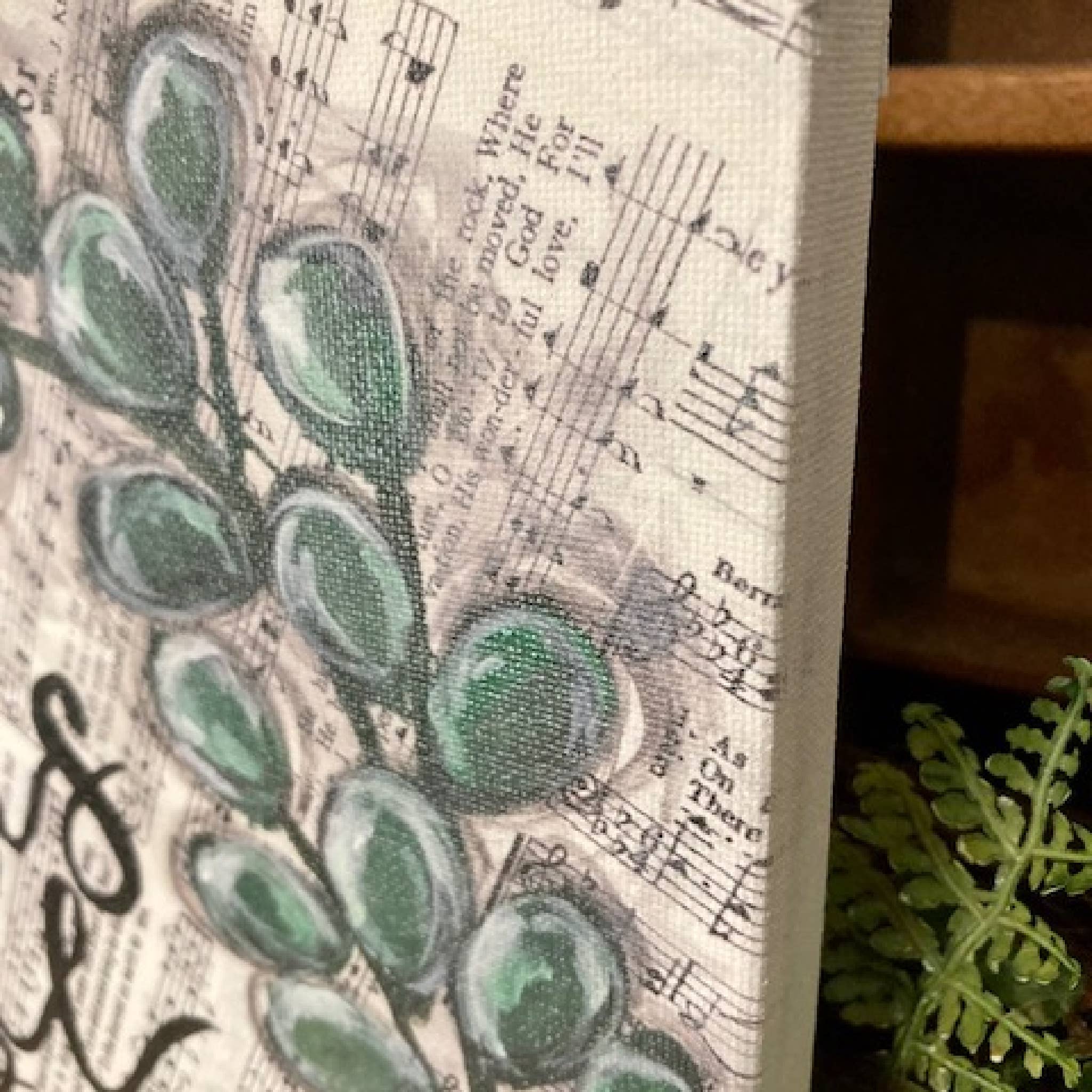 Original art design by a TN artist. Art was printed on canvas using a professional ink that won't fade and makes the print look like the original painting with bright colors. Canvas is wrapped around a wooden frame which makes it easy for hanging. Great gift for any music lover, church, grandparent or Mother's Day Gift. Canvas has a 1/2" raised edge that will not be painted.