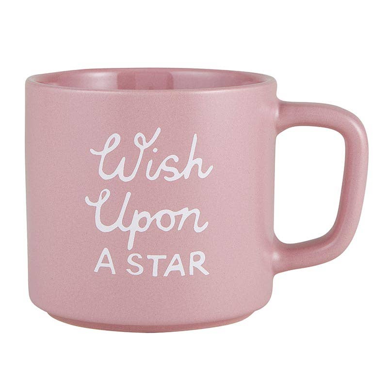 Reads: Wish upon a star • Inside bottom of mug features metallic gold star • Perfect gift for her! • Not dishwasher or microwave safe • Metallic gold foil • Features art from Vicky Yorke • Material: Stoneware • Size: 3.5" H, 14oz • Care Instructions: Hand Wash Only - Do Not Microwave
