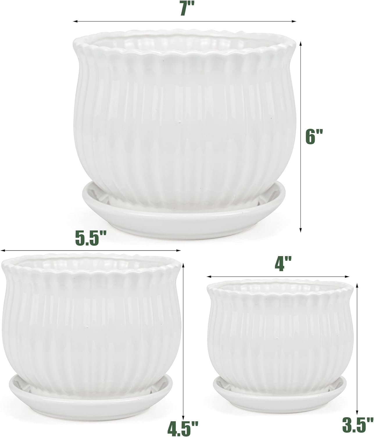 Ceramic Flower Plant Pot with Saucer - 5.5"